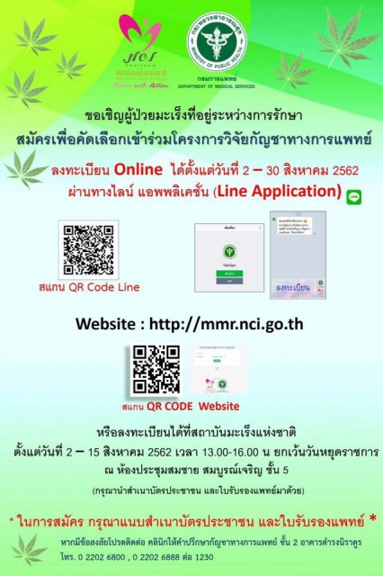 ขอเชิญผู้ป่วยมะเร็งที่อยู่ระหว่างรักษาสมัครเพื่อคัดเลือกโครงการวิจัยทางการแพทย์