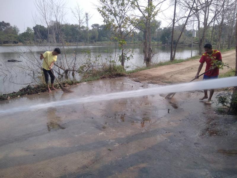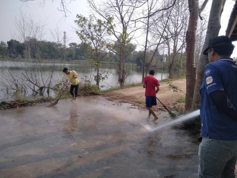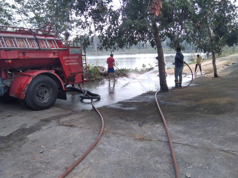 ออกปฏิบัติงานตามคำร้องของผู้นำหมู่ที่ 14 เพื่อลดฝุนละอองบริเวณสระน้ำประจำหมู่บ้านหนองเสม็ดพัฒนา ตำบลนางรอง