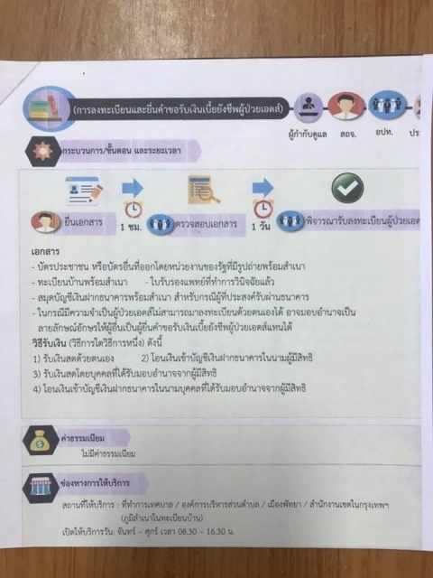 มาตรฐานการให้บริการ - การลงทะเบียนและยื่นคำขอรับเงินเบี้ยยังชีพผู้ป่วยเอดส์