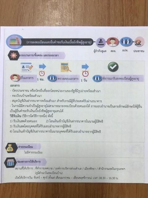 มาตรฐานการให้บริการ - การลงทะเบียนและยื่นคำขอรับเงินเบี้ยยังชีพผู้สูงอายุ