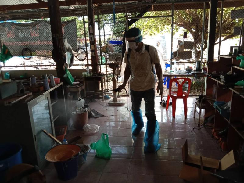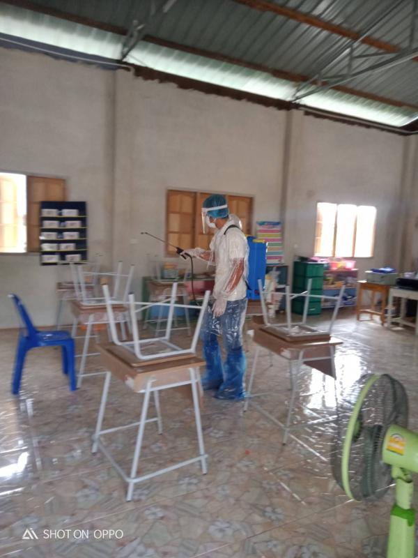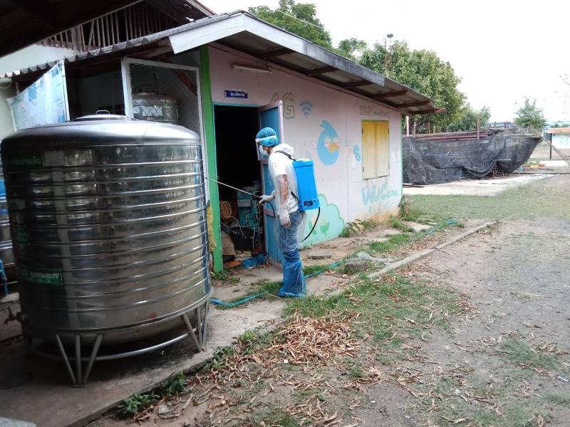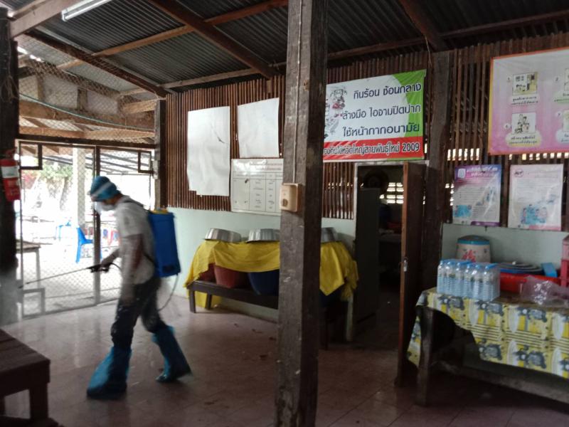 ลงพื้นที่ฉีดพ่นน้ำยาฆ่าเชื้อโควิด -19 ณ โรงเรียนบ้านโคกหลวงพ่อ