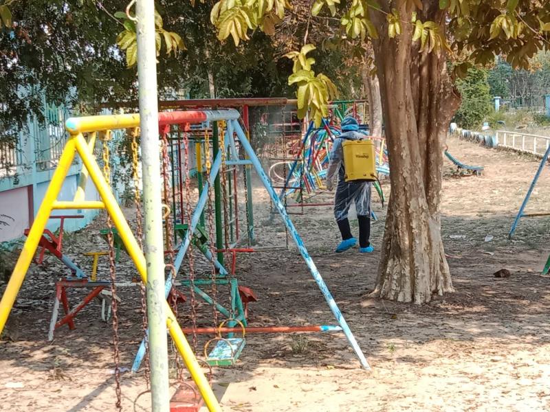 ลงพื้นที่ฉีดพ่นน้ำยาฆ่าเชื้อโควิด -19