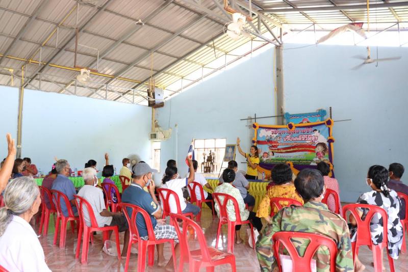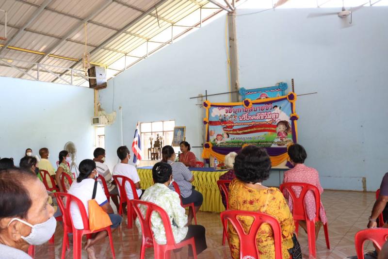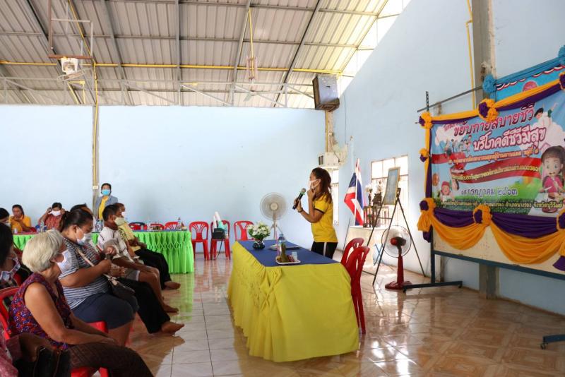 นางชูศรี พูนสวัสดิ์ รองนายกองค์การบริหารส่วนตำบลนางรอง กล่าวเปิดโครงการ ขยับกายสบายชีวี บริโภคดีชีวีมีสุข พร้อมด้วยคณะกรรมการกองทุนฯ สปสช. โดยกลุ่ม อสม.บ้านตากแดดหมู่ที่ ๘ สนับสนุนโครงการโดยกองทุนฯ