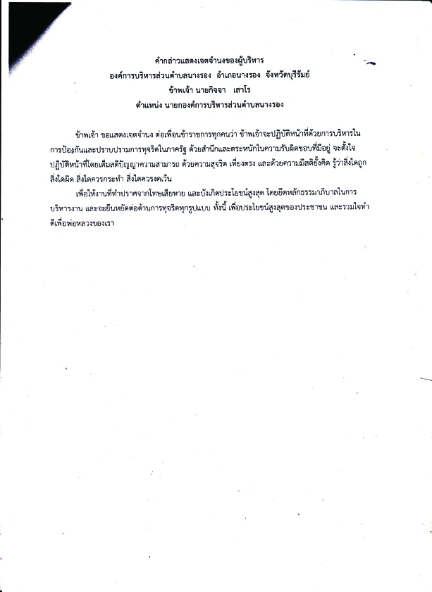 ประกาศองค์การบริหารส่วนตำบลนางรอง เรื่อง นโยบายคุณธรรมและความโปร่งใส