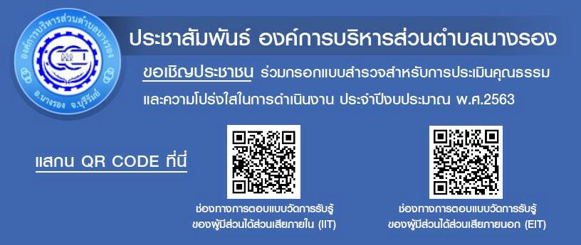 ขอเชิญร่วมกรอกแบบสำรวจสำหรับการประเมินคุณธรรมและความโปร่งใสในการดำเนินงาน ประจำปีงบประมาณ พ.ศ.2563
