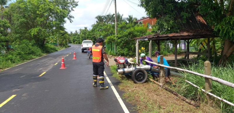 มอบหมายให้งานป้องกันและบรรเทาสาธารณภัยนำเครื่องสูบน้ำลงพื้นที่ หมู่ที่ 8 บ้านตากแดด ตำบลนางรอง อำเภอนางรอง จังหวัดบุรีรัมย์ ซึ่งมีคณะผู้บริหาร สมาชิกสภาองค์การบริหารส่วนตำบล ร่วมลงพื้นที่ครั้งนี้ด้วย เพื่อแก้ไขปัญหาน้ำท่วมขัง เนื่องจากฝนตกหนัก