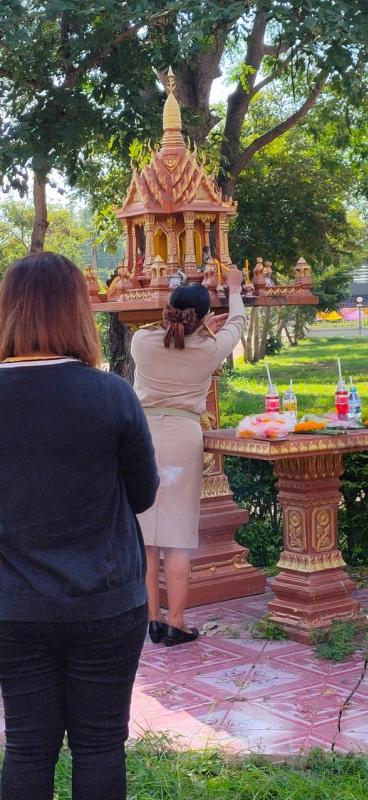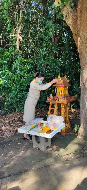 พร้อมพนักงานส่วนตำบล ไว้ไหว้ศาลพระภูมิ ช่วยทำให้เกิดความสงบร่มเย็นภายในสำนักงาน นอกจากนี้ยังเชื่อว่าสามารถช่วยในเรื่องโชคลาภ บารมี ความรัก และการงาน โดยศาลพระภูมิคือ ศาลที่สร้างขึ้นเพื่อให้เป็นที่สถิตของเทพารักษ์