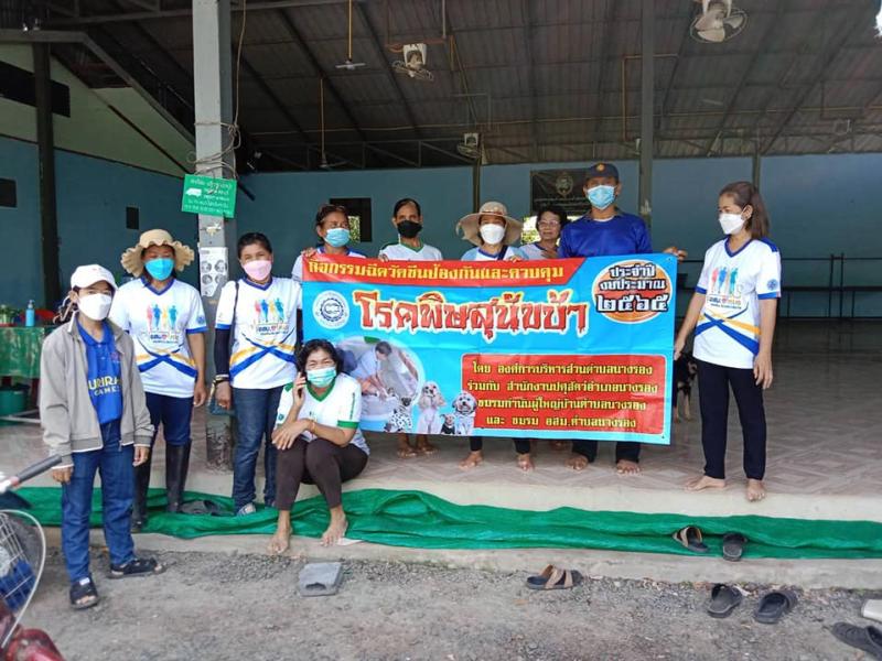 มอบหมายให้กองสาธารณสุขและสิ่งแวดล้อม ดำเนินการฉีดวัคซีนป้องกันและควบคุมโรคพิษสุนัขบ้า ดำเนินการตามข้อบัญญัติ รายจ่ายประจำปีงบประมาณ พ.ศ.2565 ณ บ้านตากแดด หมู่ที่ 8 ตำบลนางรอง อำเภอนางรอง จังหวัดบุรีรัมย์