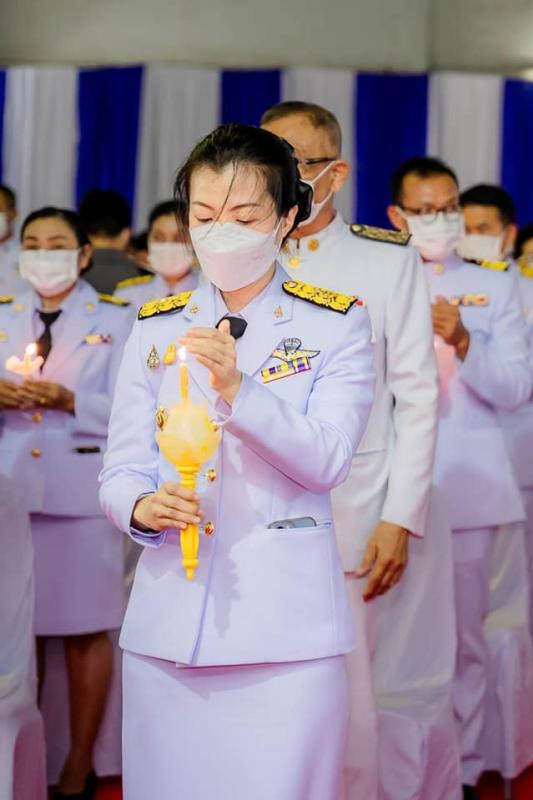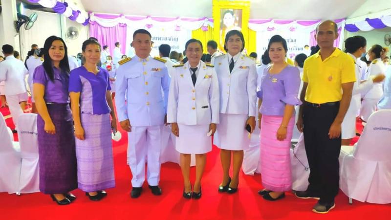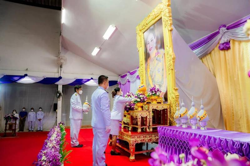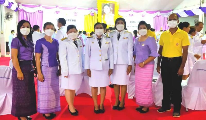 พร้อมด้วย นางสำรวม รอดจากเข็ญ รองนายกองค์การบริหารส่วนตำบลนางรอง สมาชิกสภาฯ และข้าราชการ ร่วมพิธีวางพานพุ่มเงิน พุ่มทอง ถวายเป็นเครื่องราชสักการะและจุดเทียนถวายพระพรชัยมงคล สมเด็จพระนางเจ้าสุทิดา พัชรสุธาพิมลลักษณ พระบรมราชินี เนื่องในโอกาสวันเฉลิมพระชนมพรรษา 3 มิถุนายน 2565 ณ ศาลประชาคมอำเภอนางรอง จังหวัดบุรีรัมย์