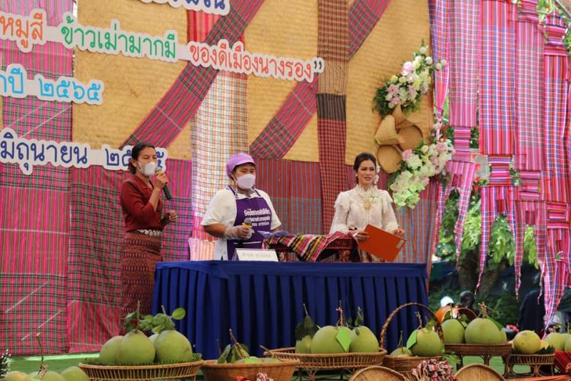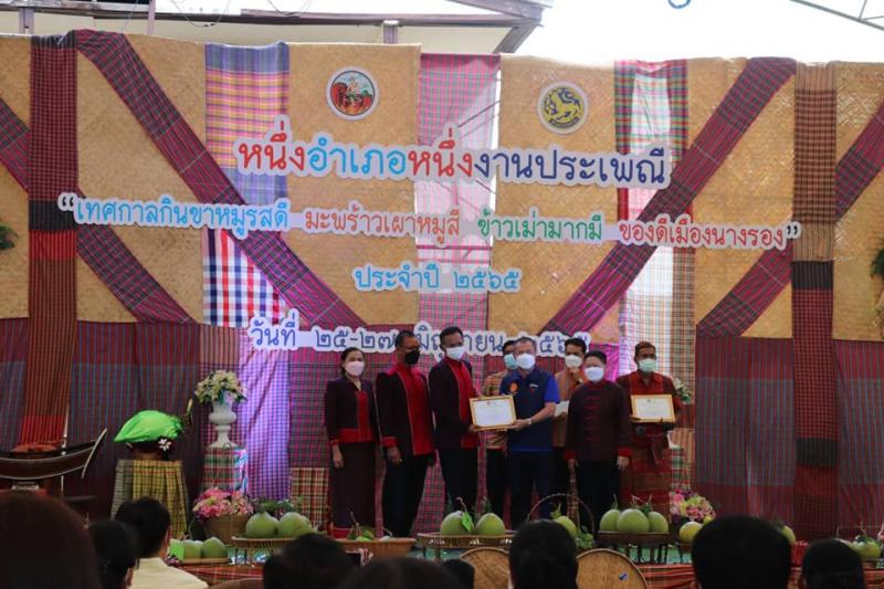 พร้อมคณะผู้บริหาร สมาชิกสภาฯ และพนักงานส่วนตำบล เข้าร่วมหนึ่งอำเภอหนึ่งงานประเพณี "เทศกาลกินขาหมูรสดี มะพร้าวเผาหมูสี ข้าวเม่ามากมี ของดีเมืองนางรอง" ประจำปี 2565 และตำบลนางรองได้ส่งผลิตภัณฑ์เข้าประกวดหลายรายการ คว้ารางวัลมากมาย