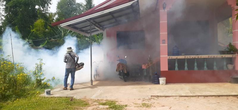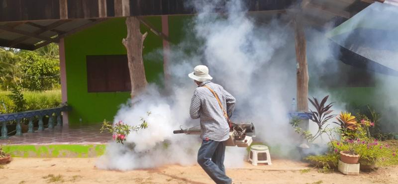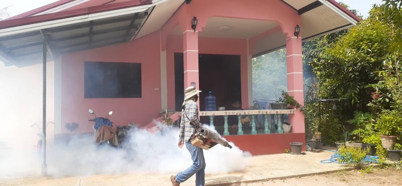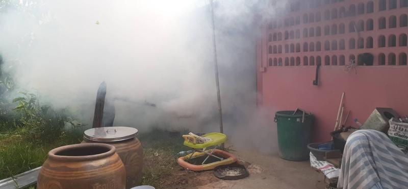 มอบหมายให้เจ้าหน้าที่กองสาธารณสุขและสิ่งแวดล้อม ลงพื้นที่พ่นหมอกควัน และหยอดทรายอะเบท หมู่ที่ 11 บ้านหนองตาเข้ม ตำบลนางรอง จังหวัดบุรีรัมย์