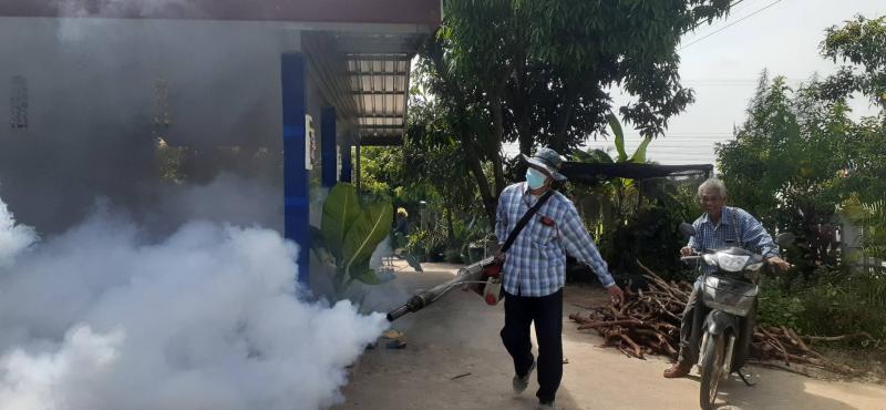 มอบหมายให้เจ้าหน้าที่กองสาธารณสุขและสิ่งแวดล้อม ลงพื้นที่พ่นหมอกควัน และหยอดทรายอะเบท หมู่ที่ 11 บ้านหนองตาเข้ม ตำบลนางรอง จังหวัดบุรีรัมย์