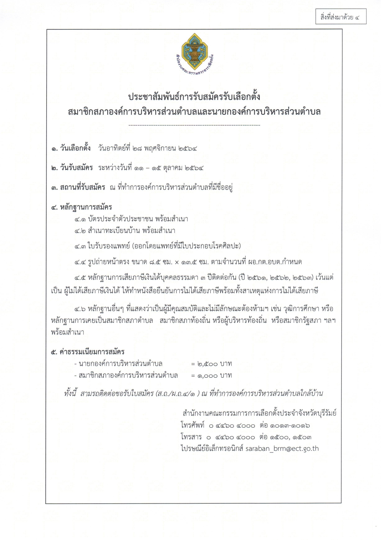 ประชาสัมพันธ์การรับสมัครรับเลือกตั้งองค์การบริหารส่วนตำบลนางรอง