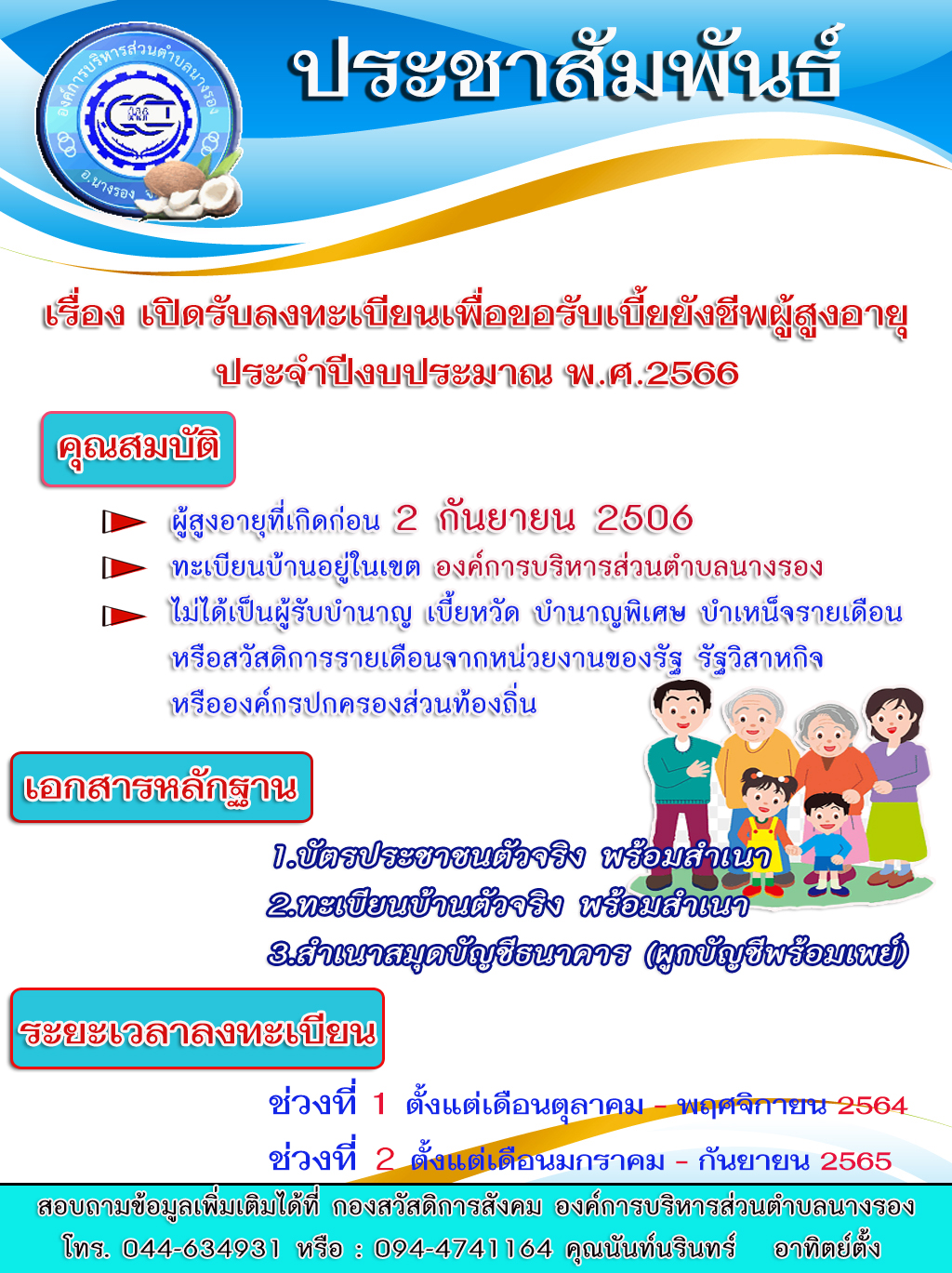 การเปิดรับลงทะเบียนเบี้ยยังชีพผู้สูงอายุ เพื่อรับเบี้ยยังชีพผู้สูงอายุ ในปีงบประมาณ พ.ศ. 2566