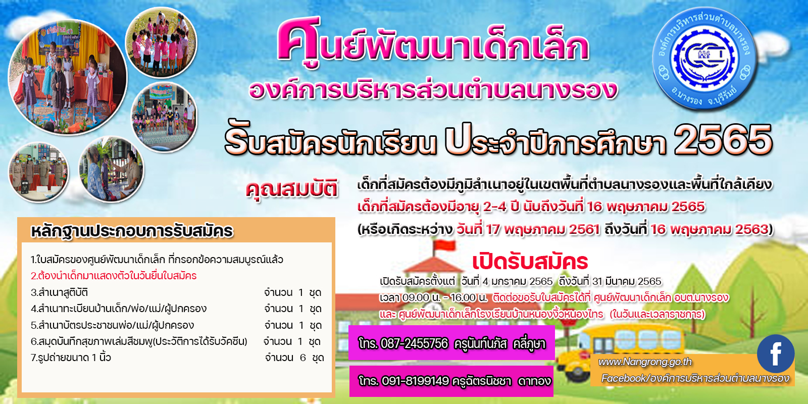 #ประชาสัมพันธ์รับสมัครนักเรียนเพื่อเข้าเรียนในศูนย์พัฒนาเด็กเล็กสังกัดองค์การบริหารส่วนตำบลนางรอง
