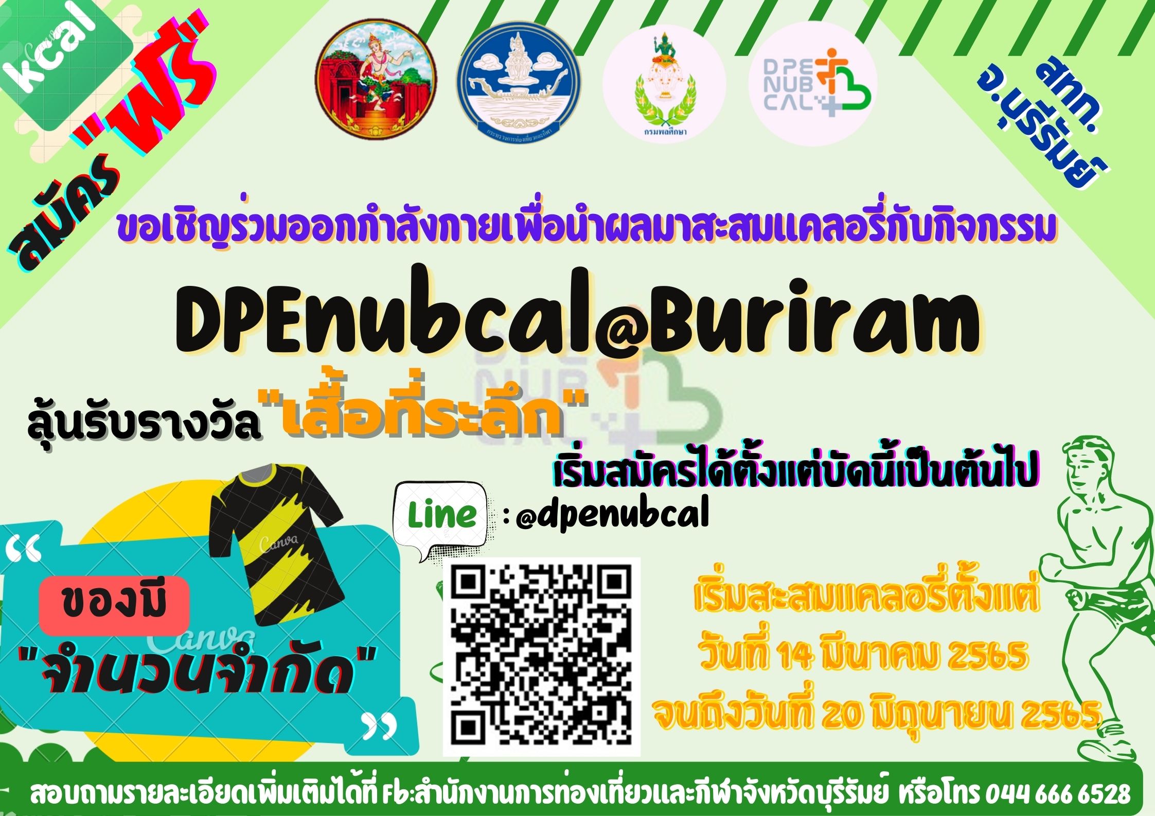 เชิญชวนเด็ก เยาวชน ประชาชนและผู้สูงอายุ สมัครเข้าร่วมการจัดกิจกรรมสะสมแคลอรี่ “DPE_nub Cal” ตั้งแต่บัดนี้เป็นต้นไป โดยสมัครผ่านช่องทาง Line: @dpenubcal หรือตาม QR Code ที่แนบมาพร้อมนี้