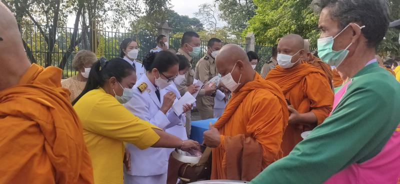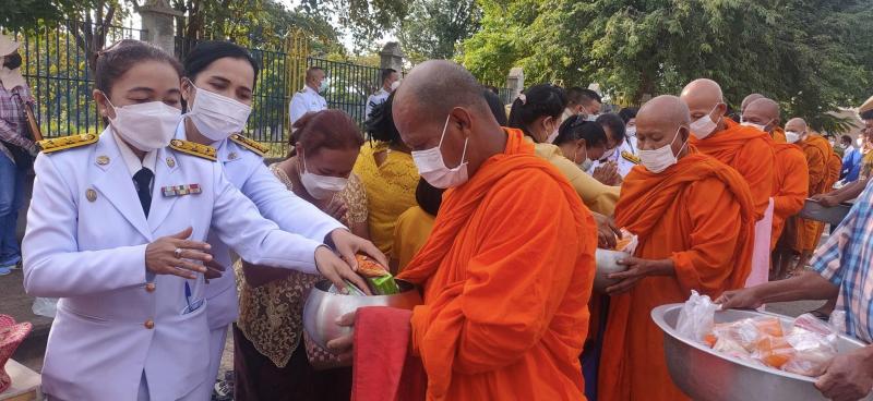 ร่วมพิธีทำบุญตักบาตรและวางพวงมาลาถวายสักการะ
