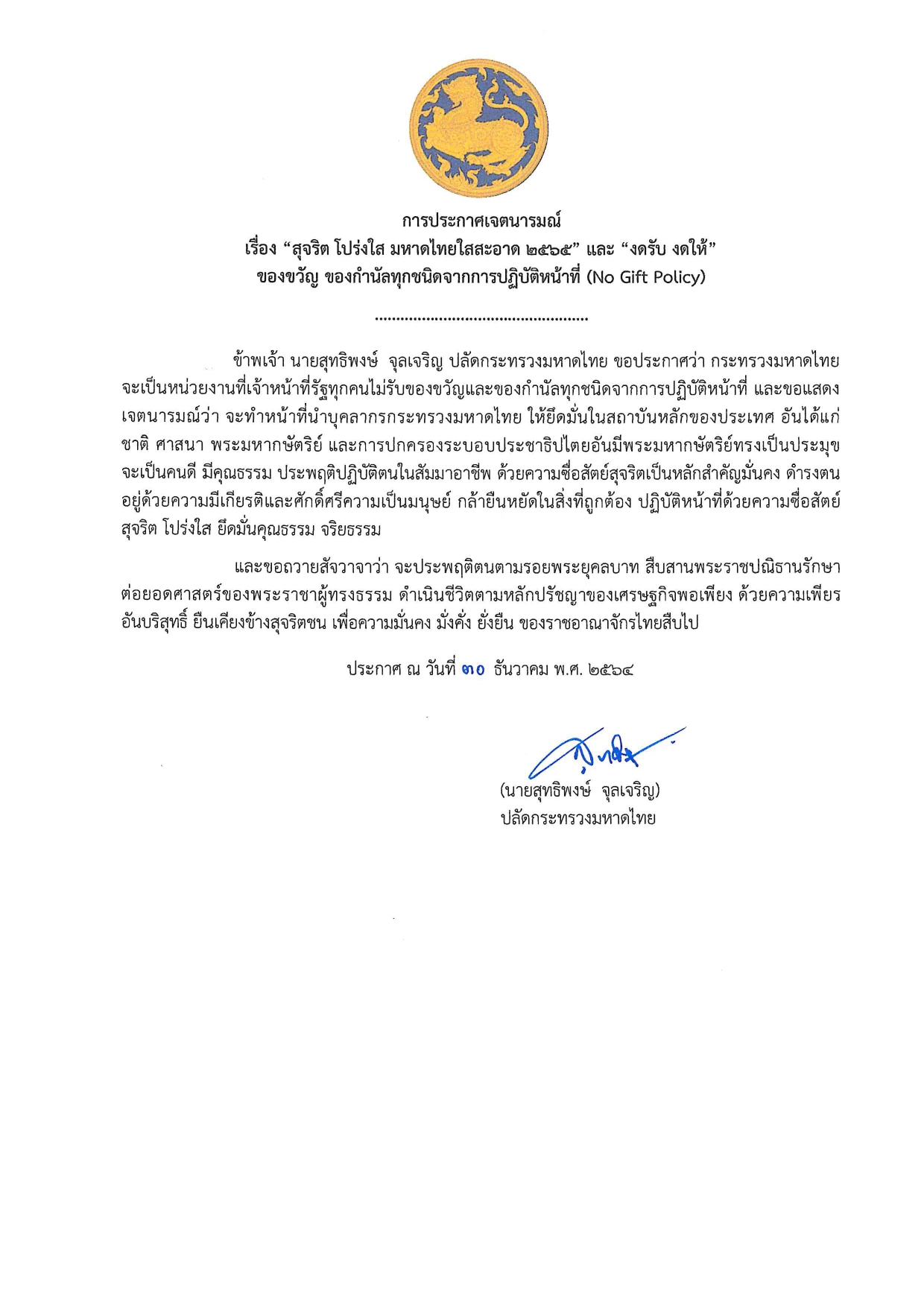 การประกาศเจตนารมณ์ กระทรวงมหาดไทย