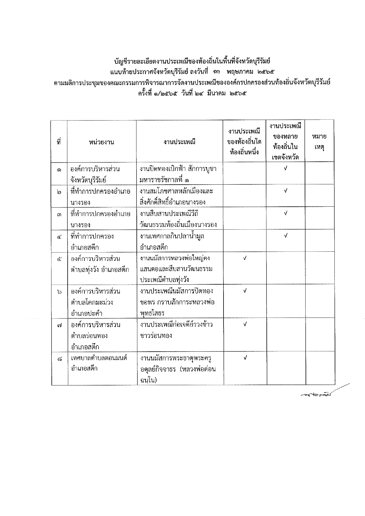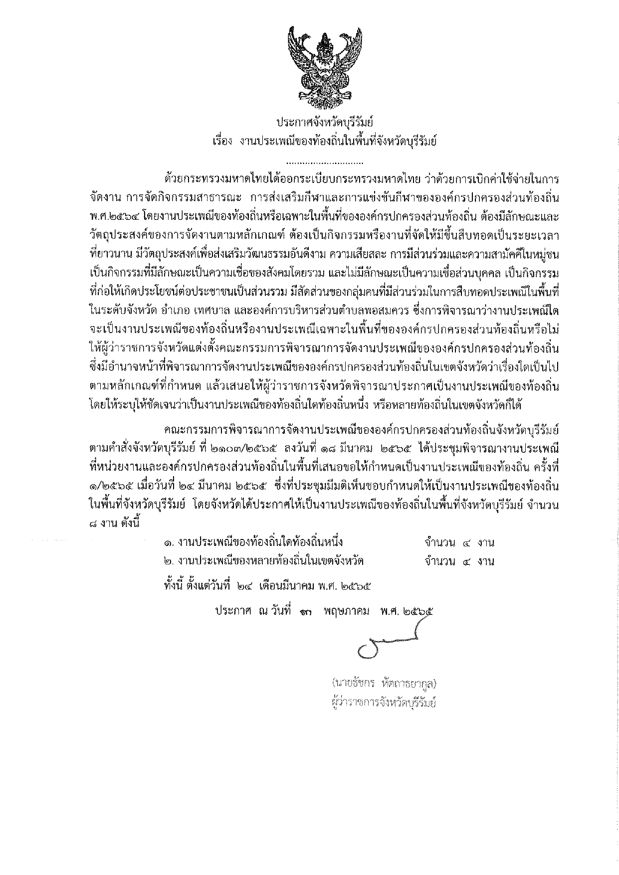 ประกาศงานประเพณีของท้องถิ่นในพื้นที่จังหวัดบุรีรัมย์