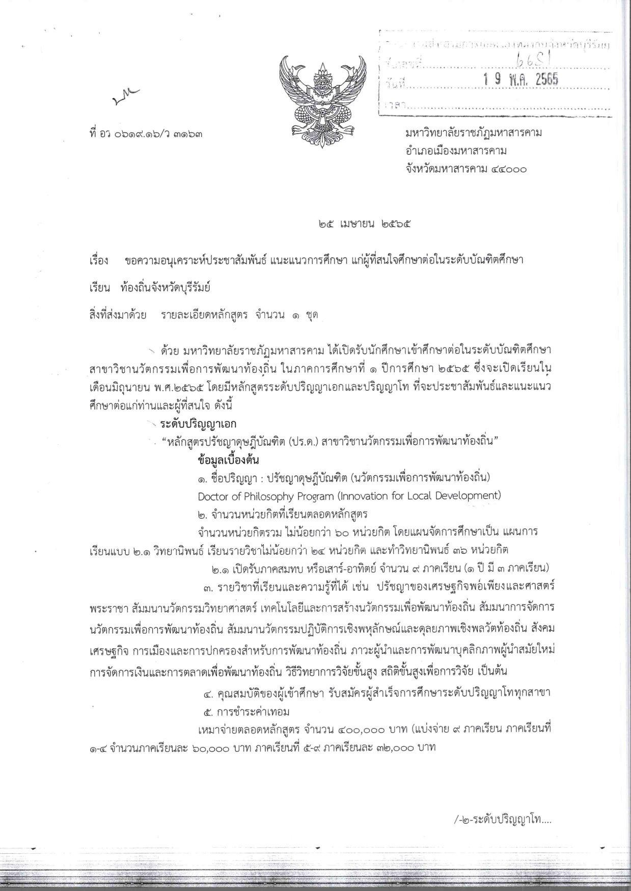 ประชาสัมพันธ์ แนะแนวการศึกษา แก่ผู้ที่สนใจศึกษาต่อในระดับบัณฑิตศึกษา มหาวิทยาลัยราชภัฎมหาสารคาม