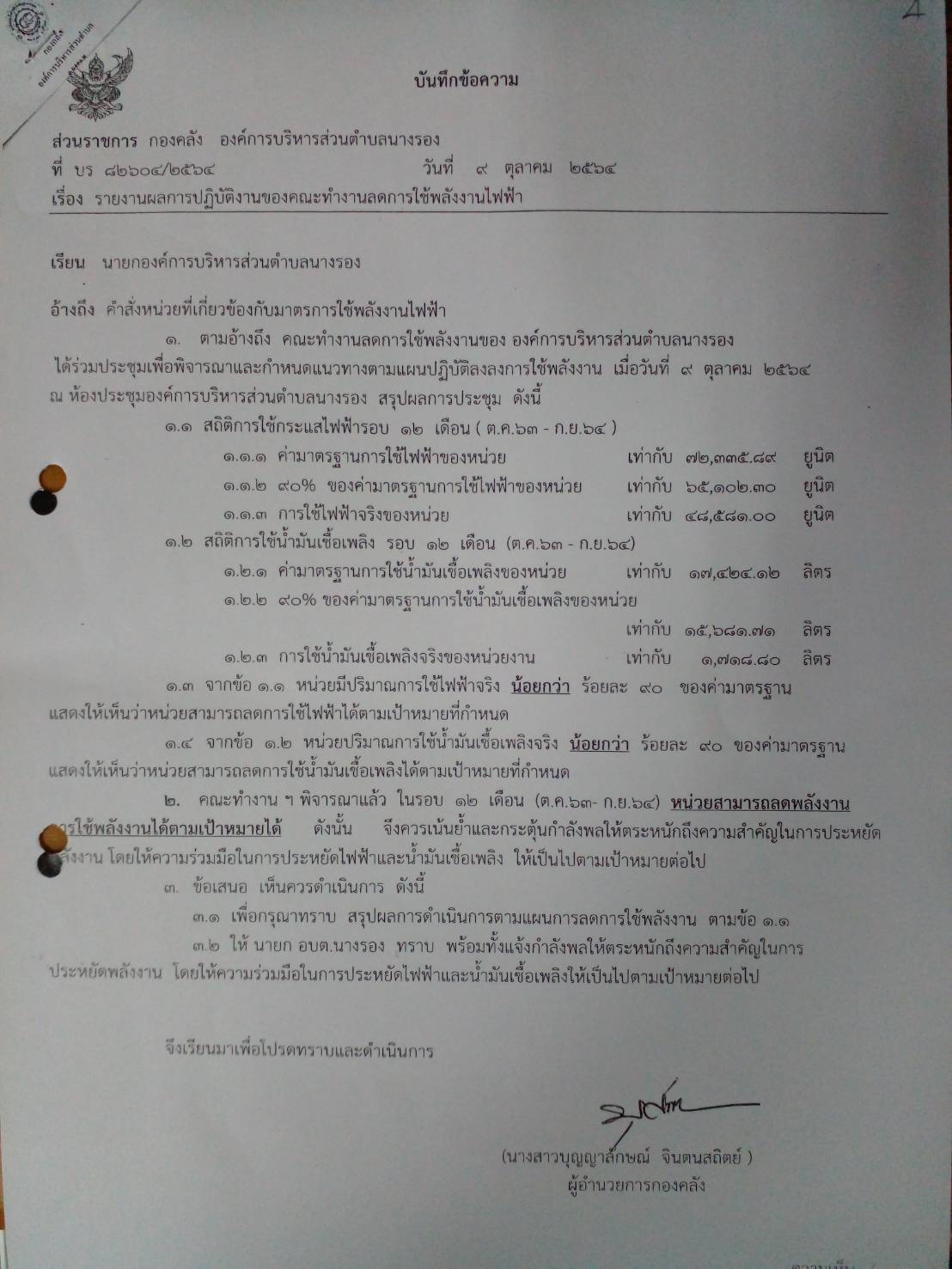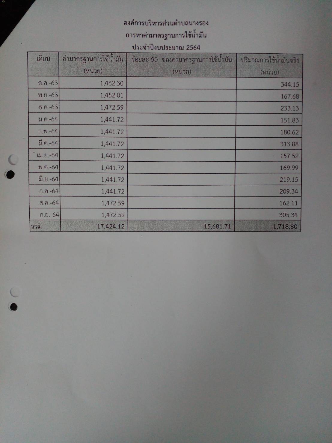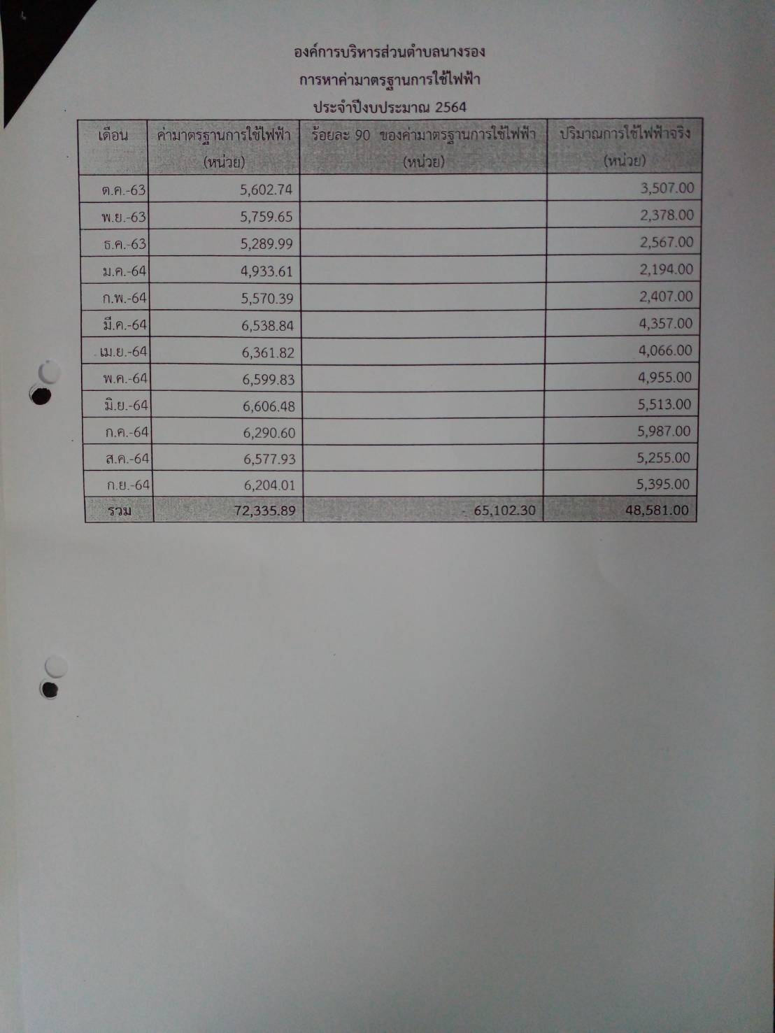 ผลการลดพลังงานของ อบต.นางรอง ประจำปีงบประมาณ พ.ศ. 2564