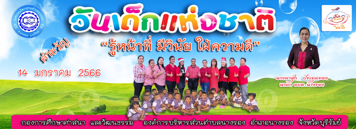 องค์การบริหารส่วนตำบลนางรอง ขอเชิญร่วมงานวันเด็กแห่งชาติ ในวันเสาร์ที่ 14 มกราคม 2566