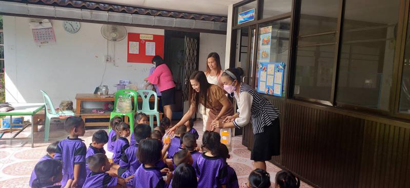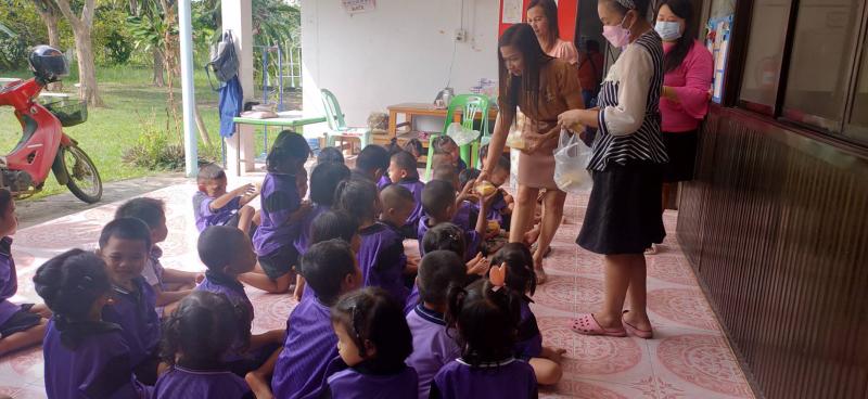 มอบขนมแก่เด็กๆ