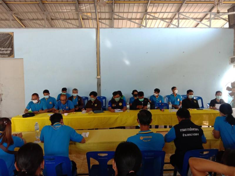นางสำรวม รอดจากเข็ญ รองนายกองค์การบริหารส่วนตำบลนางรอง และนายประภาศ นอกกระโทก ประธานสภาฯ ร่วมประชุมสัญจรกำนัน-ผู้ใหญ่บ้านตำบลนางรอง ณ ศูนย์การเรียนรู้บ้านตากแดด