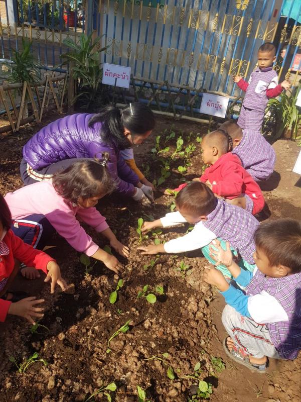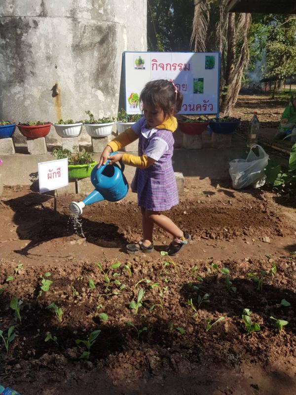 จัดกิจกรรม “หนูน้อยปลูกผักสวนครัว เพื่อสร้างความมั่นคงทางอาหาร” ตามแนวการจัดกิจกรรมเตรียมประสบการณ์บูรณาการเรียนรู้เพื่อเสริมสร้างคุณลักษณะอยู่อย่างพอเพียงตามหลักสูตรการศึกษาปฐมวัยของสถานศึกษาสังกัดองค์กรปกครองส่วนท้องถิ่น ภายใต้โครงการเสริมสร้างทักษะการเรียนรู้รักธรรมชาติ สิ่งแวดล้อม วัฒนธรรม และความเป็นไทย