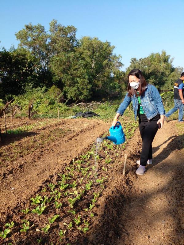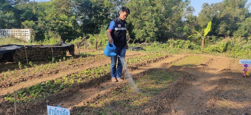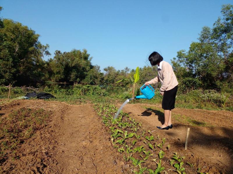 ดูแลผักที่ปลูกตามโครงการโรงเรียนพอเพียงท้องถิ่น