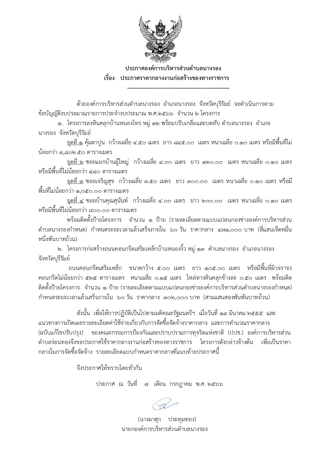 ประกาศราคากลางโครงการลงหินคลุกบ้านหนองไทร หมู่ 12