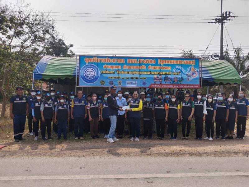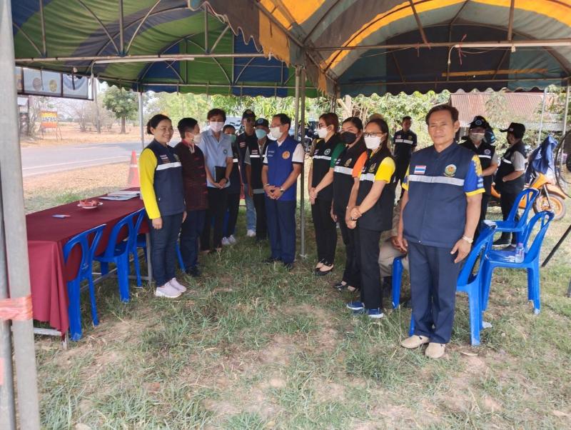 ปลัดองค์การบริหารส่วนตำบล หัวหน้าสำนักปลัด และพนักงานส่วนตำบล ร่วมพิธีเปิดโครงการจุดบริการประชาชน ด่านชุมชน ด่านครอบครัว ตำบลนางรอง ณ จุดบริการหนองทะลอก