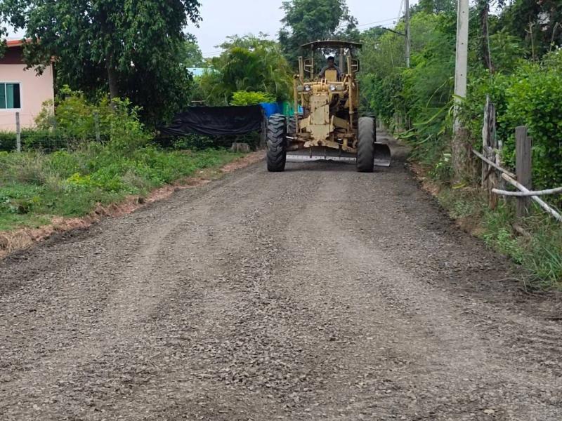 กองช่าง ลงพื้นที่ติดตามโครงการลงหินคลุกบ้านหนองเสม็ด หมู่ที่ 3 พร้อมปรับเกลี่ยบดทับ แล้วเสร็จตามแบบรูปรายการกำหนด