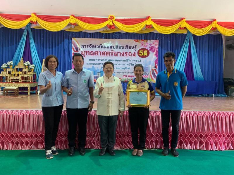 โดยมีนางสาวเพชรรัตน์ ภูมาศ นายอำเภอนางรอง ประธานการจัดเวทีแลกเปลี่ยนความรู้ ยุทธศาสตร์นางรอง 5 ดี คณะกรรมการพัฒนาคุณภาพชีวิตอำเภอนางรอง (พชอ.)และคณะกรรมการพัฒนาคุณภาพชีวิตระดับตำบล (พชต.) อำเภอนางรอง จังหวัดบุรีรัมย์