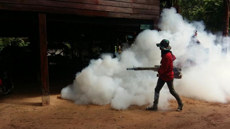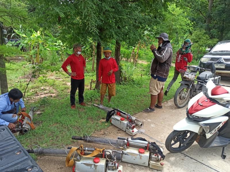 ดำเนินกิจกรรมพ่นหมอกควันและหยอดทรายกำจัดลูกน้ำยุงลาย ตามโครงการป้องกันและกำจัดโรคไข้เลือดออก