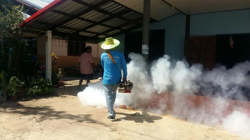 กิจกรรมพ่นหมอกควันและหยอดทรายกำจัดลูกน้ำยุงลาย ตามโครงการป้องกันและกำจัดโรคไข้เลือดออก