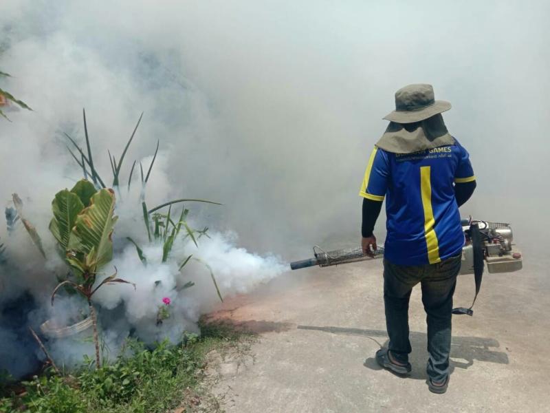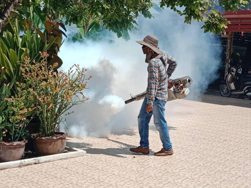 ได้ดำเนินกิจกรรมพ่นหมอกควันและหยอดทรายกำจัดลูกน้ำยุงลาย ตามโครงการป้องกันและกำจัดโรคไข้เลือดออก ประจำปีงบประมาณ 2566