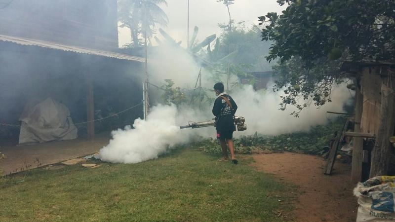 กิจกรรมพ่นหมอกควันและหยอดทรายกำจัดลูกน้ำยุงลาย ตามโครงการป้องกันและกำจัดโรคไข้เลือดออก
