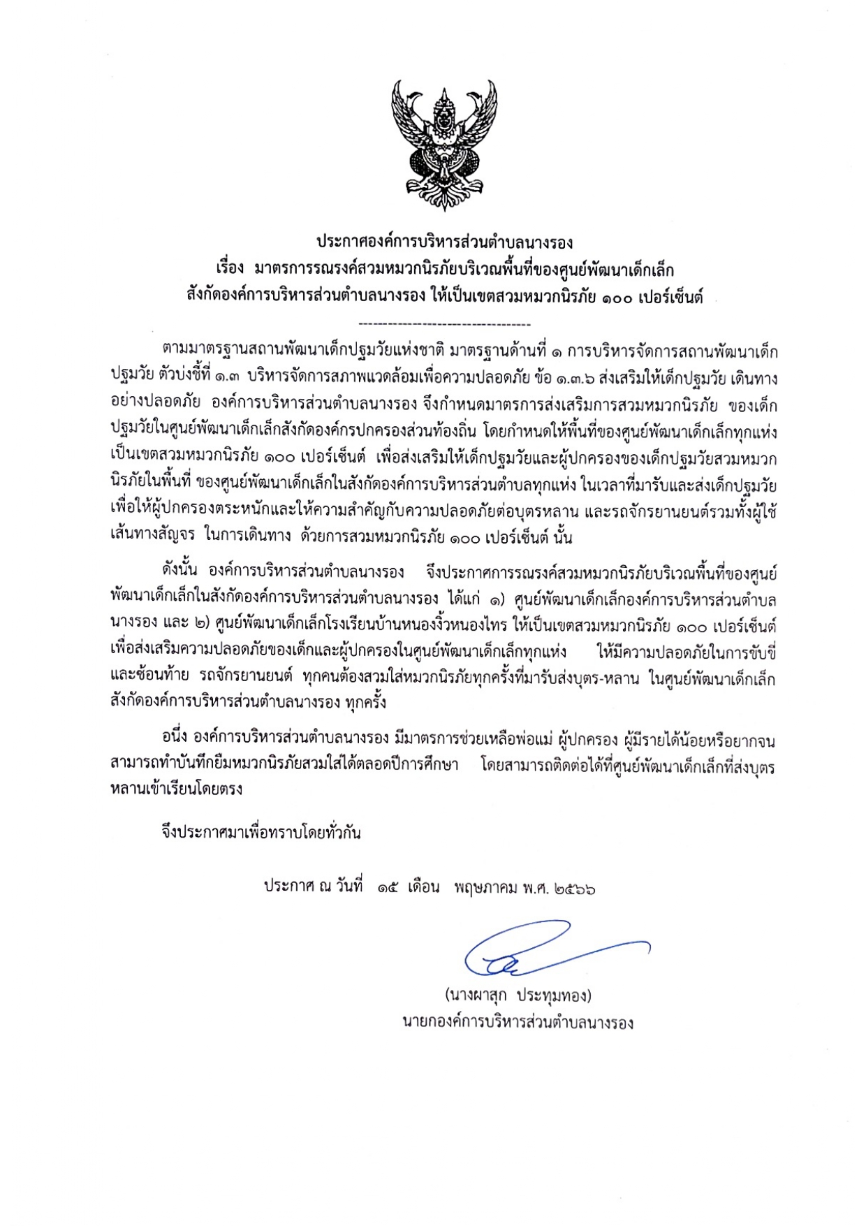 ประกาศเรื่อง การรณรงค์สวมหมวกนิรภัย