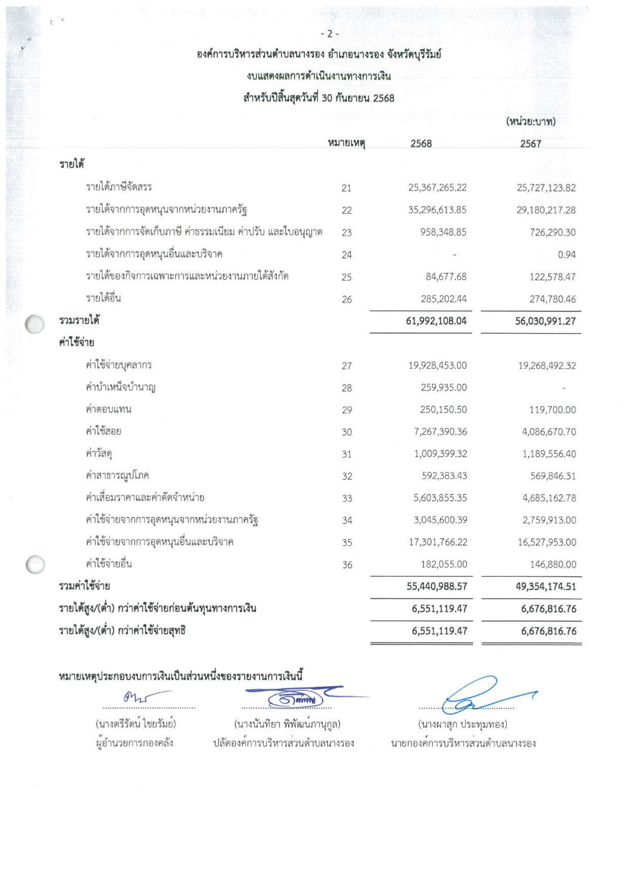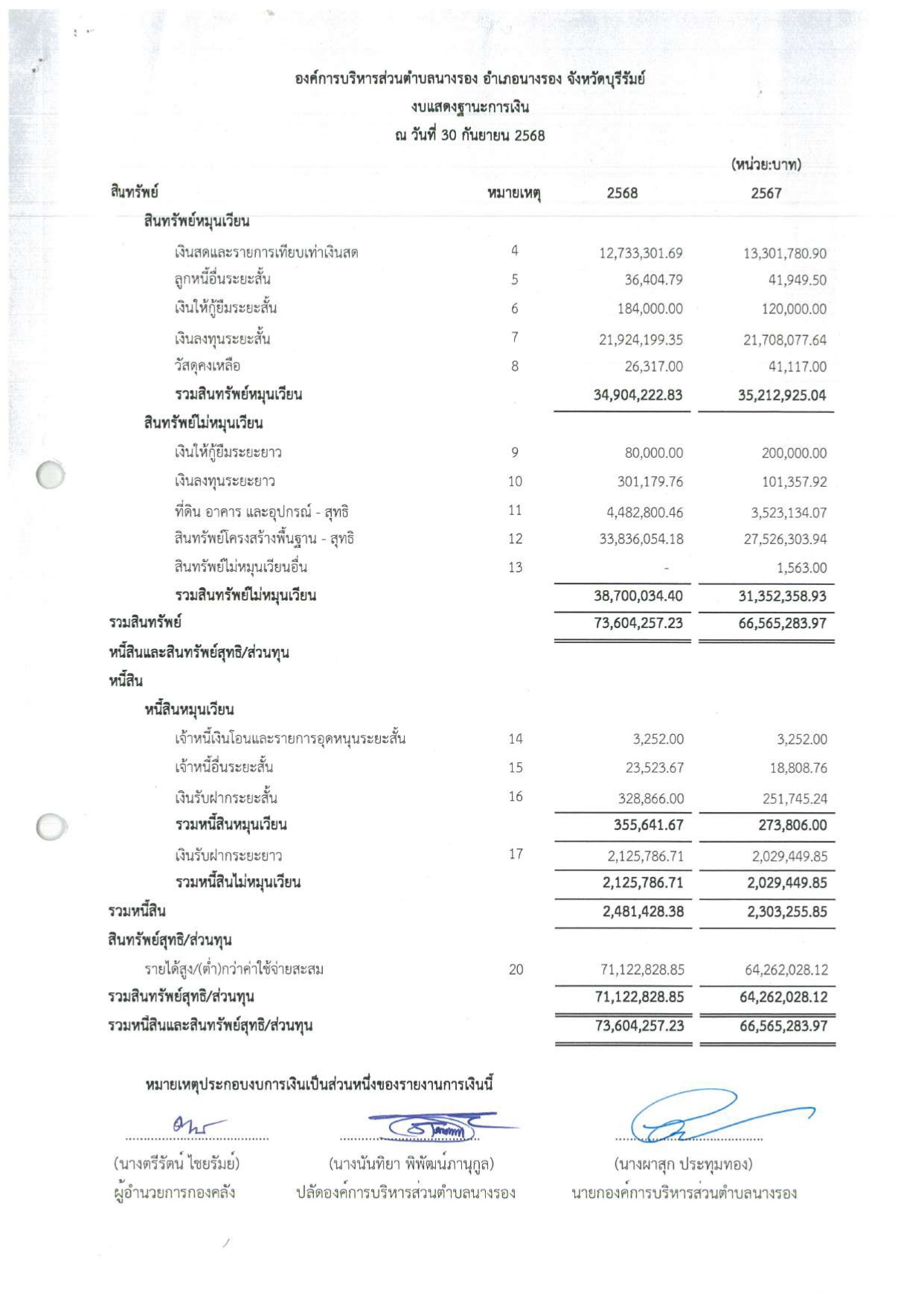 งบแสดงฐานะการเงินและงบอื่นๆ ประจำปีงบประมาณ 2568