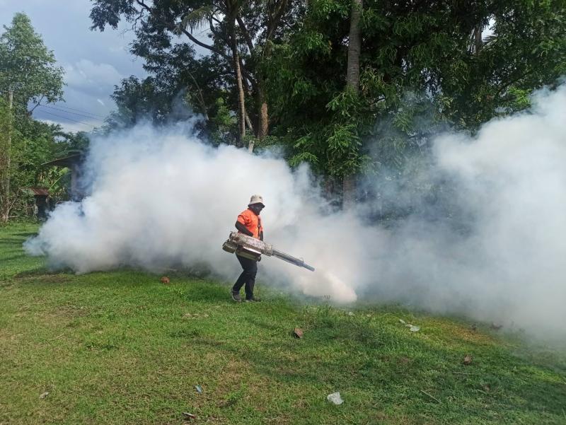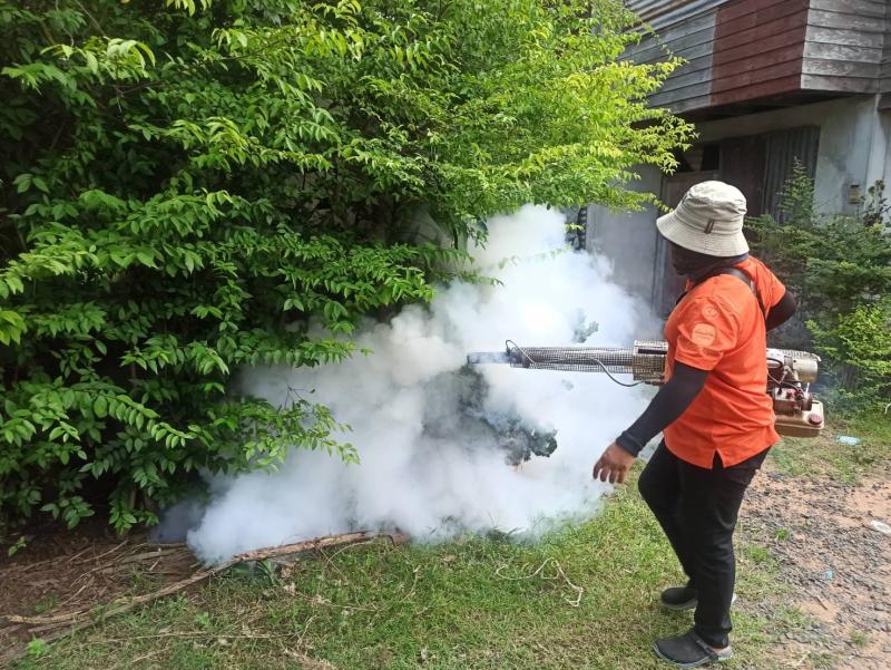 ดำเนินการควบคุมโรคไข้เลือดออก โดยพ่นหมอกควัน กำจัดลูกน้ำยุงลาย
