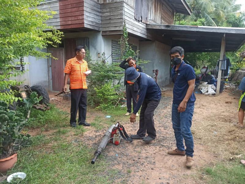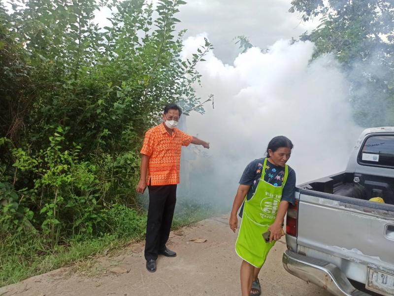 นำทีมเจ้าหน้าที่กองสาธารณสุขและสิ่งแวดล้อม ดำเนินการควบคุมโรคไข้เลือดออก โดยพ่นหมอกควัน กำจัดลูกน้ำยุงลาย จากกรณีพบผู้ป่วยโรคไข้เลือดออกรายแรกของเขตพื้นที่บริการองค์การบริหารส่วนตำบลนางรอง ในพื้นที่ ม.8 บ้านตากแดด ตามาตรการ 0 3 7