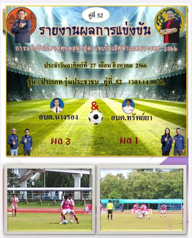 ผลการแข่งขันกีฬาฟุตบอลมุ่งสู่ความเป็นเลิศอำเภอนางรอง ประจำปี 2566