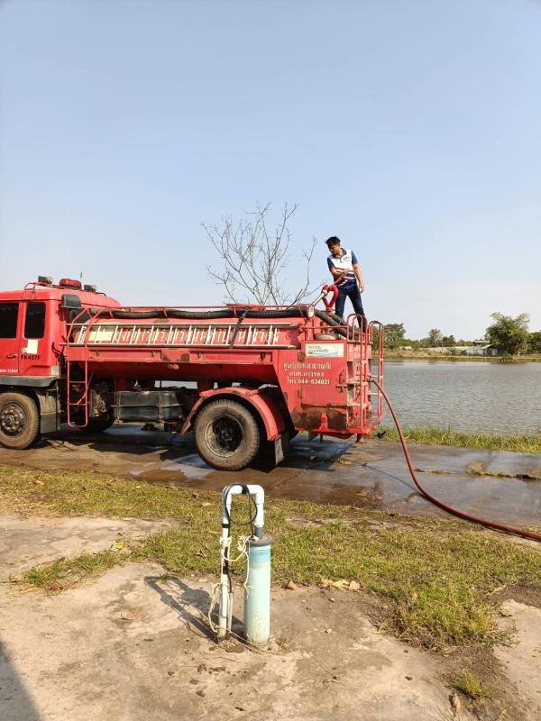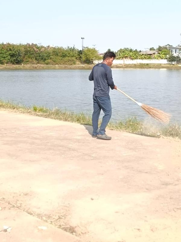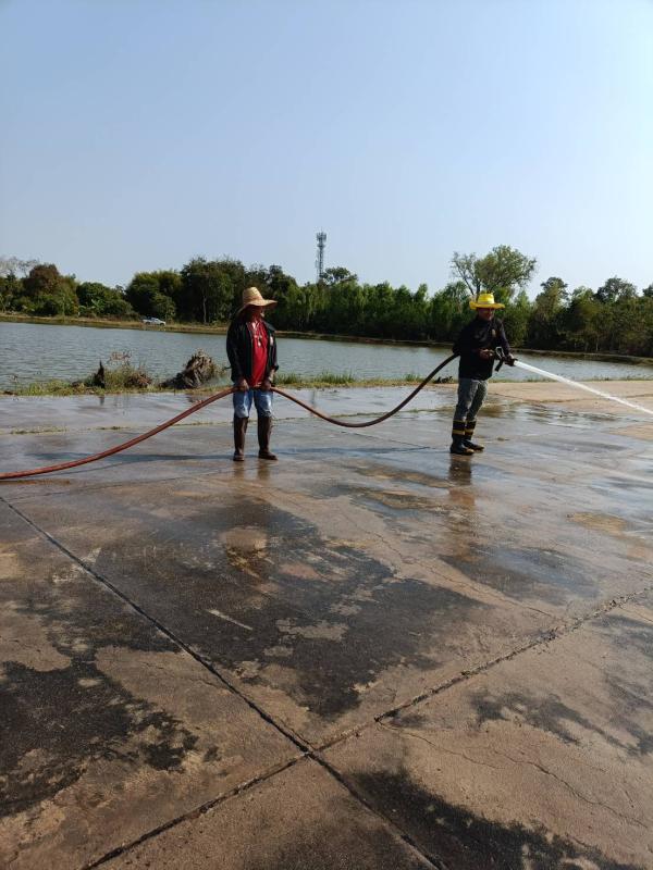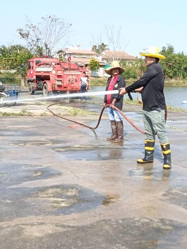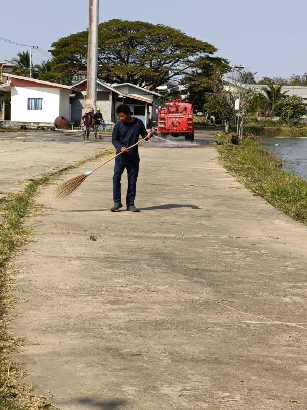 ออกฉีดน้ำทำความสะอาดรอบสระหมู่บ้านหนองเสม็ด
