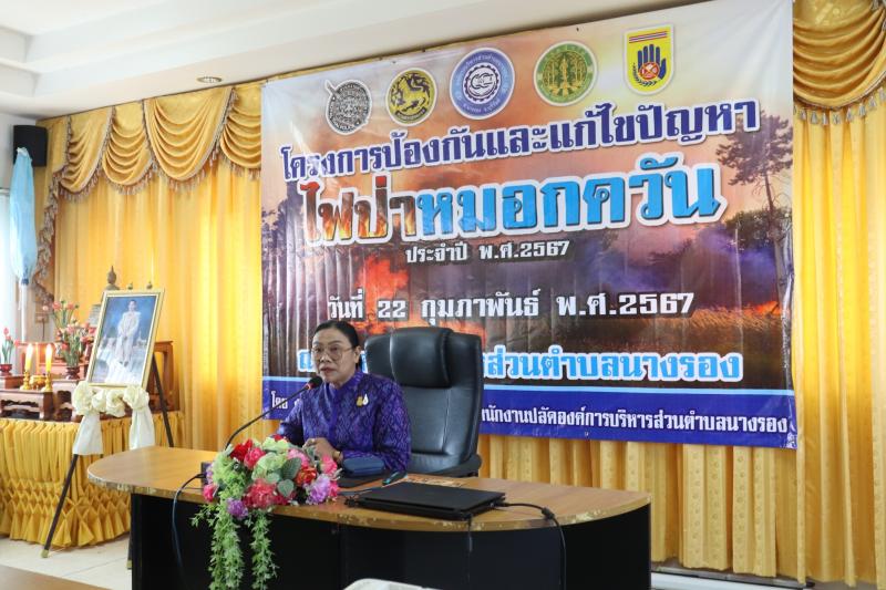 นางผาสุก ประทุมทอง นายกองค์การบริหารส่วนตำบลนางรอง ประธานในพิธีเปิดโครงการป้องกันและแก้ไขปัญหาไฟป่าหมอกควัน ประจำปีงบประมาณ พ.ศ.2567 พร้อมด้วยคณะผู้บริหาร ปลัดองค์การบริหารส่วนตำบล รองปลัดองค์การบริหารส่วนตำบล หัวหน้าส่วนราชการ และพนักงานส่วนตำบล เข้าร่วมเปิดโครงการในครั้งนี้