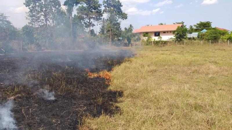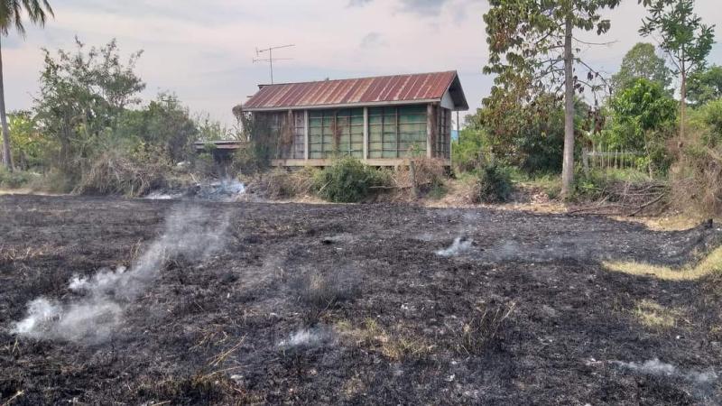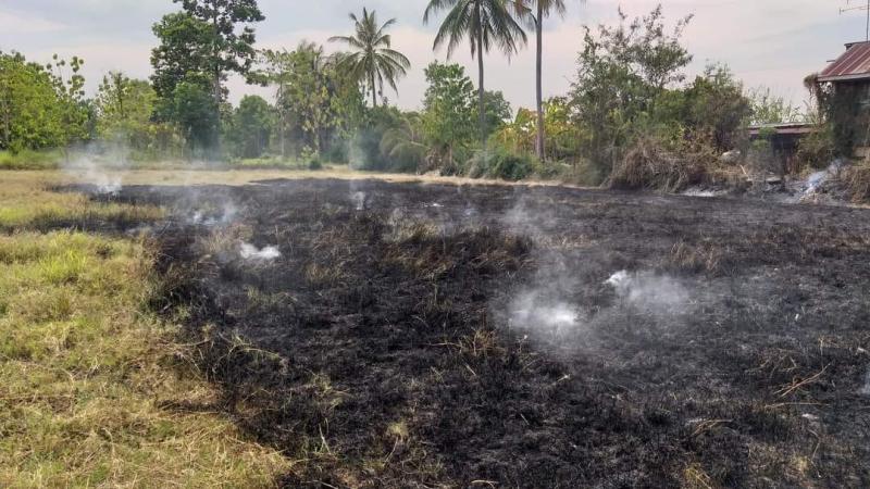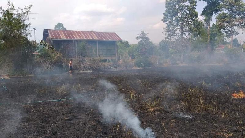 ออกตรวจสอบและระงับเหตุไฟลุกลามจากสวนลงทุ่งนาจากการจุดเผาวัชพืช พื้นที่บ้านแพงพวย หมู่ที่ 9