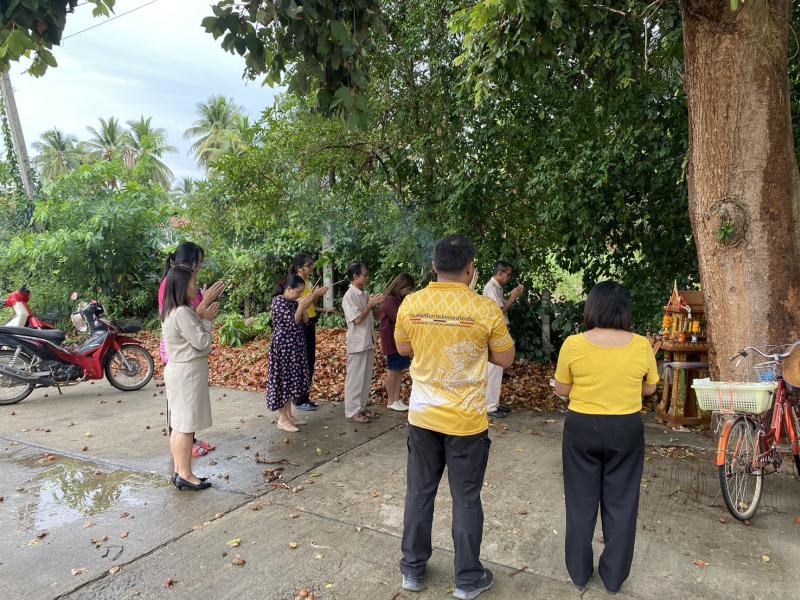 นายสมนึก ลำเภาพันธ์ ผู้อำนวยการกองช่าง นำพนักงานส่วนตำบล ไหว้ศาลพระภูมิ เจ้าที่ เป็นสิ่งศักดิ์สิทธิ์ที่นับถือ เพื่อความเป็นศิริมงคลในการปฏิบัติงาน ตลอดปลอดภัยภยันอันตรายทั้งปวง