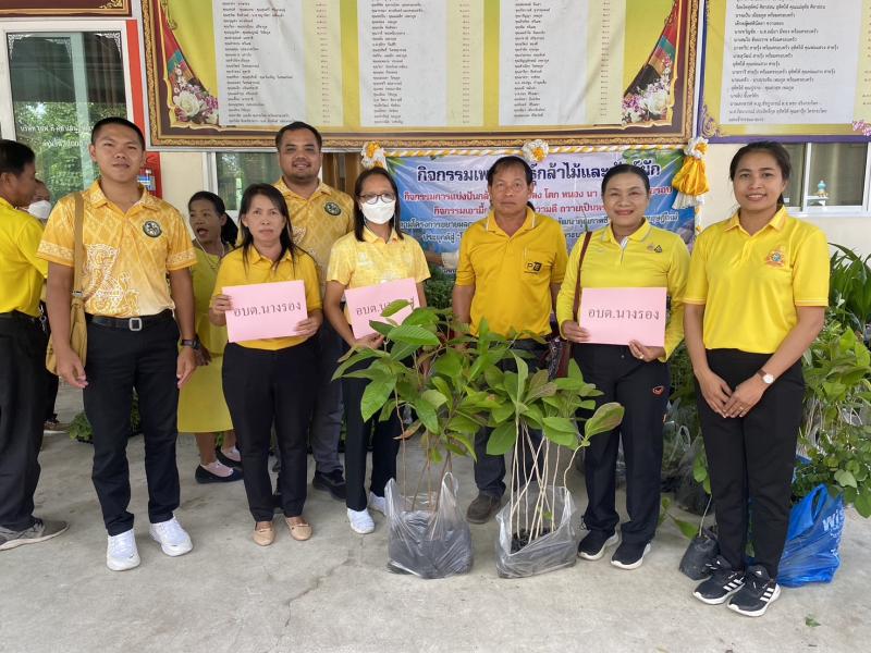 นางผาสุก ประทุมทอง นายกองค์การบริหารส่วนตำบลนางรอง พร้อมหัวหน้าสำนักปลัด ผู้อำนวยการกองสวัสดิการสังคมและพนักงานส่วนตำบล ร่วมกิจกรรมทอดผ้าป่าต้นไม้ “แบ่งปันกล้าไม้จากแปลง โคก หนองนา สู่ประชาชนโดยรอบ” เฉลิมพระเกียรติพระบาทสมเด็จพระเจ้าอยู่หัว เนืองในโอกาสมหามงคลเฉลิมพระชนพรรษา 6 รอบ 28 กรกฏาคม 2567 ณ วัดสิงห์วงค์ หมู่ที่ 2 ตำบลหนองไทร อำเภอนางรอง จังหวัดบุรีรัมย์ เพื่อสร้างความมั่นคงทางอาหารและสร้างความมั่นคงทางด้านสิ่งแวดล้อม
