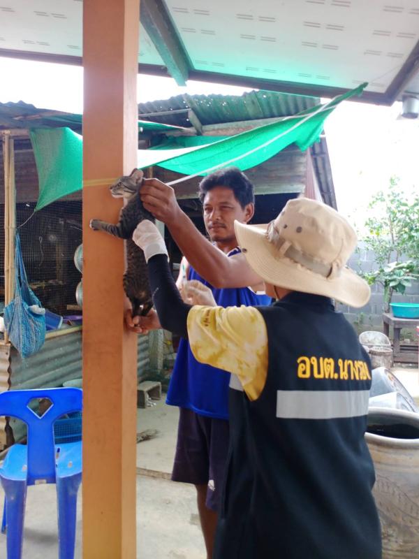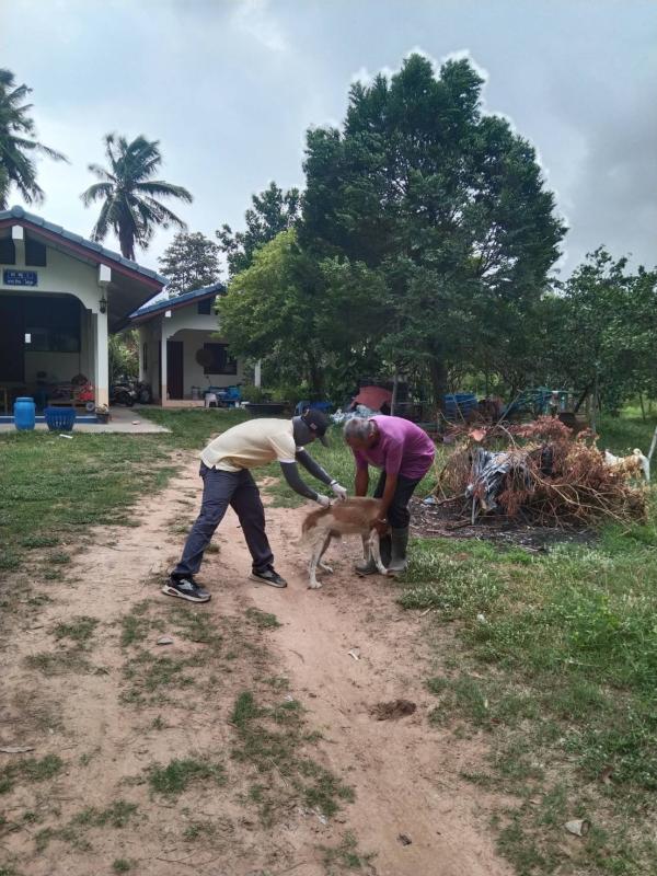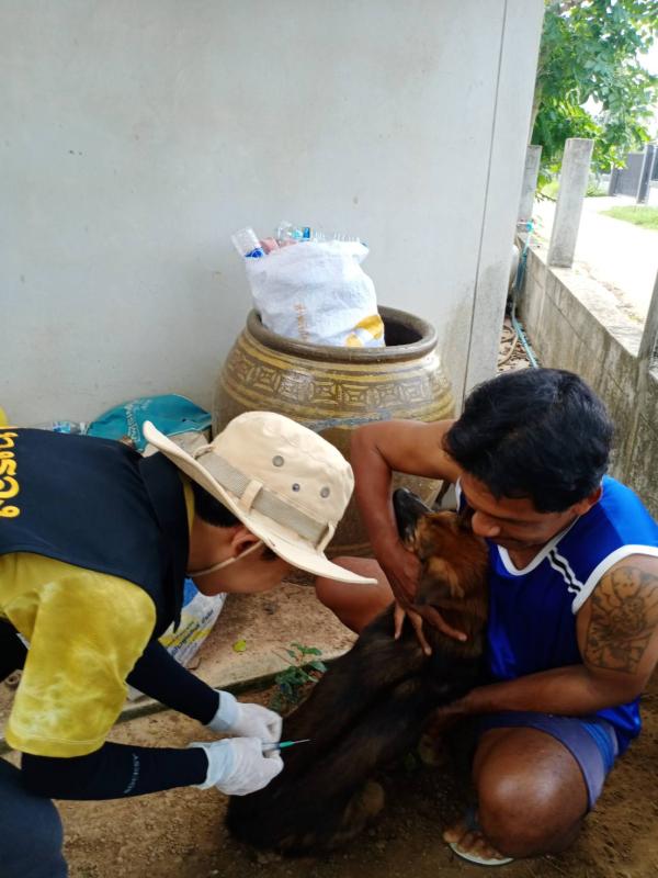 ออกบริการฉีดวัคซีนป้องกันและควบคุมโรคพิษสุนัขบ้า ณ บ้านแพงพวย หมู่ที่ 1