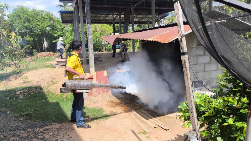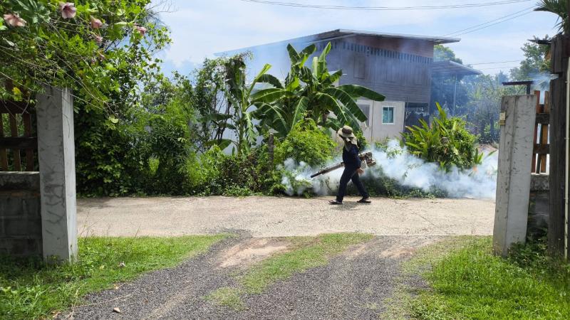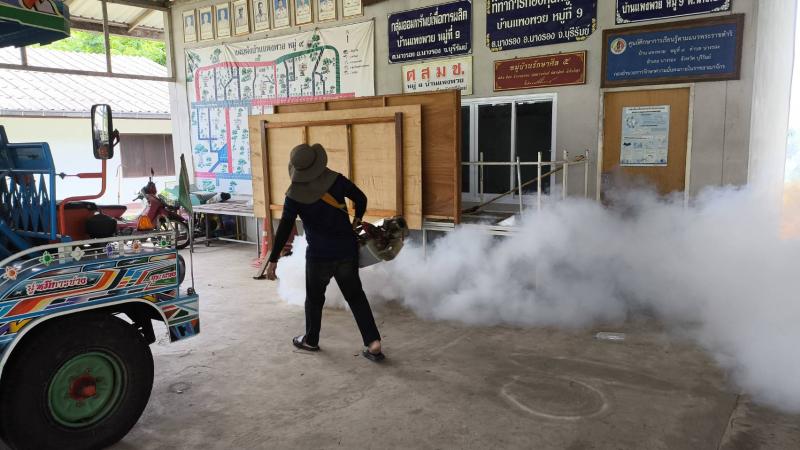 มอบหมายเจ้าหน้าที่กองสาธาณณสุขและสิ่งแวดล้อม ออกดำเนินการพ่นหมอกควันกำจัดยุงลาย